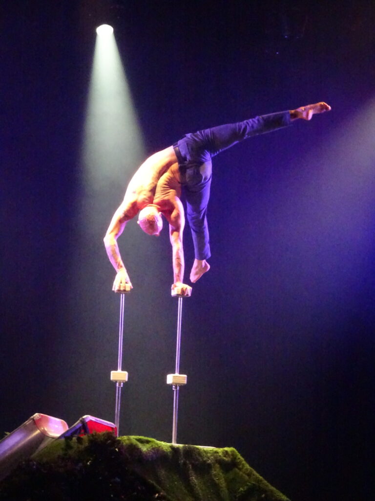 Schlussendlich sorgt die Brasilianerin Mia Ferreira mit ihrer Performance am Washington-Trapez für einen weiteren atemberaubenden Höhepunkt. In luftiger Höhe balanciert sie, teilweise im Kopfstand schwingend. Sie jongliert dabei vier Ringe zu dem atmosphärisch dramatischen Gesang „The Hanging Tree“ aus den Film Die Tribute von Panem -Mockingjay. Wie gebannt hält sich die Konzentration im Saal.
