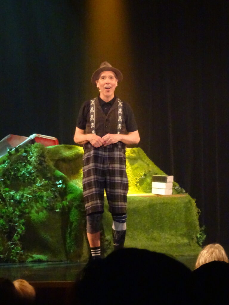 Der US-Amerikaner Jeff Hess sorgt mit Physical Comedy, chaotischer Mimik und präzise getimten Interaktionen mit dem Publikum für Slapstick-Einlagen. Humoristisch wird es, wenn er in den vorderen Reihen glatzköpfigen Herren improvisierte Kopfbedeckungen wie die GOP-Menükarten aufsetzt.
